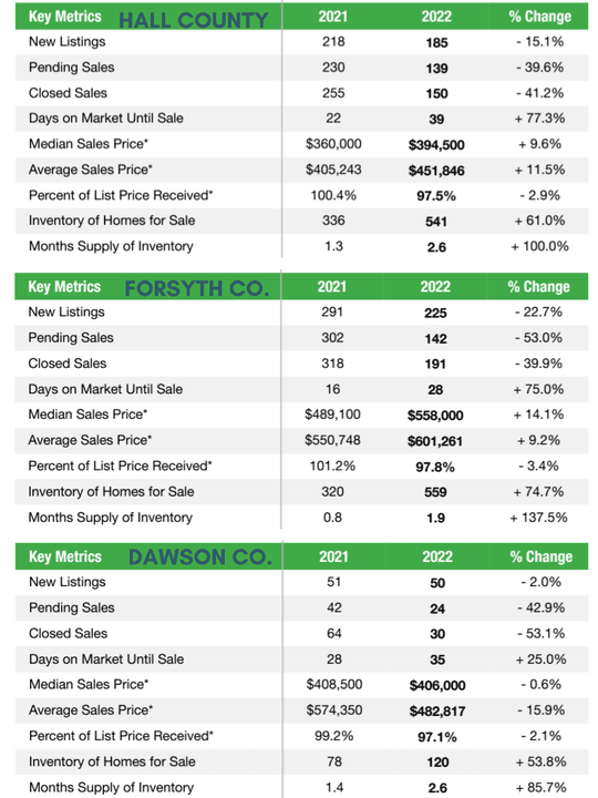 On a local level, our real estate market is holding strong. As rates settle in, buyers are making competitive offers. Days on the market are starting to rise in most areas. I am seeing a change from 30-60 days in the last 30 days of sales across Hall, Dawson, and Forsyth counties. This may be an indication of a slight slow as more inventory begins to hit these areas. As this happens, pricing homes competitively will be key. Also, remember that we have less inventory in February than we will in May. If you are thinking of selling, the sooner your home hits the market, the better.